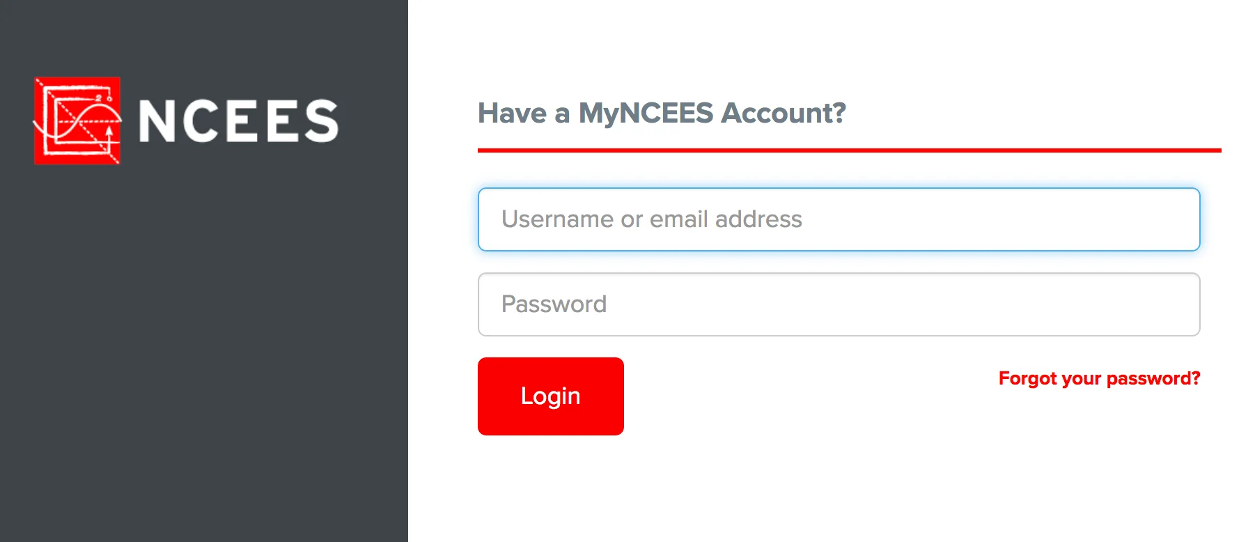 Anyone who registered for an NCEES exam from October 2010 to the present has an existing MyNCEES account. Use your existing login information to access your account.